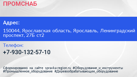 ПРОМСНАБ по адресу 150044, Ярославская область, Ярославль, Ленинградский проспект, 27Б ст2 в дальнейшем Организация, размещена в следующих категориях: