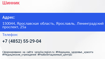 Шинник по адресу 150044, Ярославская область, Ярославль, Ленинградский проспект, 25а в дальнейшем Организация, размещена в следующих категориях: