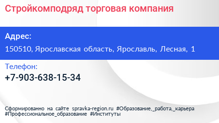 Стройкомподряд, торговая компания по адресу 150510, Ярославская область, Ярославль, Лесная, 1 в дальнейшем Организация, размещена в следующих категориях: