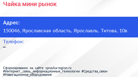 Чайка, мини-рынок по адресу 150046, Ярославская область, Ярославль, Титова, 10в в дальнейшем Организация, размещена в следующих категориях: