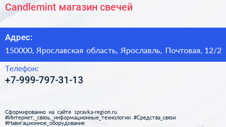 Candlemint, магазин свечей по адресу 150000, Ярославская область, Ярославль, Почтовая, 12/2 в дальнейшем Организация, размещена в следующих категориях: