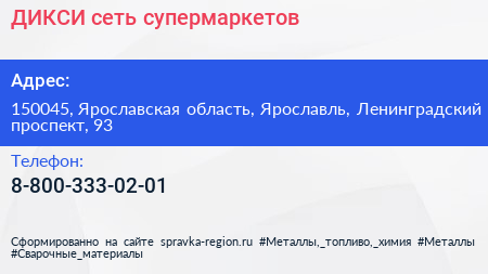 ДИКСИ, сеть супермаркетов по адресу 150045, Ярославская область, Ярославль, Ленинградский проспект, 93 в дальнейшем Организация, размещена в следующих категориях: