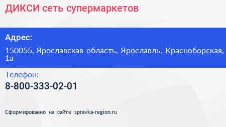 ДИКСИ, сеть супермаркетов по адресу 150055, Ярославская область, Ярославль, Красноборская, 1а в дальнейшем Организация, размещена в следующих категориях: