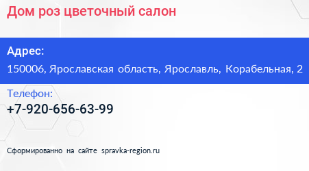 Дом роз, цветочный салон по адресу 150006, Ярославская область, Ярославль, Корабельная, 2 в дальнейшем Организация, размещена в следующих категориях: