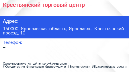 Крестьянский, торговый центр по адресу 150000, Ярославская область, Ярославль, Крестьянский проезд, 10 в дальнейшем Организация, размещена в следующих категориях: