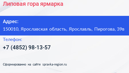 Липовая гора, ярмарка по адресу 150010, Ярославская область, Ярославль, Пирогова, 39в в дальнейшем Организация, размещена в следующих категориях:
