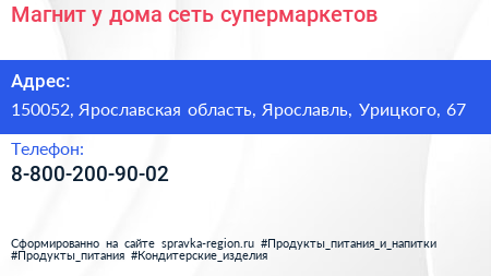 Магнит у дома, сеть супермаркетов по адресу 150052, Ярославская область, Ярославль, Урицкого, 67 в дальнейшем Организация, размещена в следующих категориях: