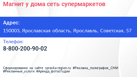 Магнит у дома, сеть супермаркетов по адресу 150003, Ярославская область, Ярославль, Советская, 57 в дальнейшем Организация, размещена в следующих категориях:
