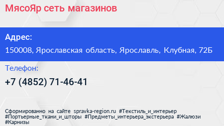 МясоЯр, сеть магазинов по адресу 150008, Ярославская область, Ярославль, Клубная, 72Б в дальнейшем Организация, размещена в следующих категориях: