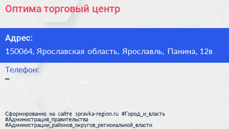 Оптима, торговый центр по адресу 150064, Ярославская область, Ярославль, Панина, 12в в дальнейшем Организация, размещена в следующих категориях: