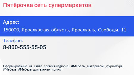 Пятёрочка, сеть супермаркетов по адресу 150000, Ярославская область, Ярославль, Свободы, 11 в дальнейшем Организация, размещена в следующих категориях:
