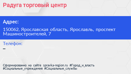 Радуга, торговый центр по адресу 150062, Ярославская область, Ярославль, проспект Машиностроителей, 7 в дальнейшем Организация, размещена в следующих категориях:
