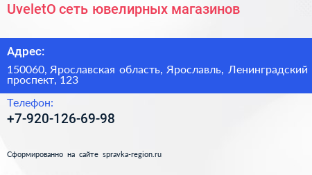 UveletO, сеть ювелирных магазинов по адресу 150060, Ярославская область, Ярославль, Ленинградский проспект, 123 в дальнейшем Организация, размещена в следующих категориях: