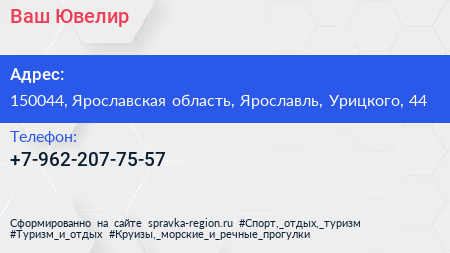 Ваш Ювелир по адресу 150044, Ярославская область, Ярославль, Урицкого, 44 в дальнейшем Организация, размещена в следующих категориях: