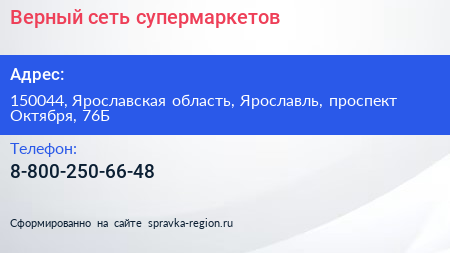 Верный, сеть супермаркетов по адресу 150044, Ярославская область, Ярославль, проспект Октября, 76Б в дальнейшем Организация, размещена в следующих категориях: