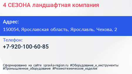4 СЕЗОНА, ландшафтная компания по адресу 150054, Ярославская область, Ярославль, Чехова, 2 в дальнейшем Организация, размещена в следующих категориях: