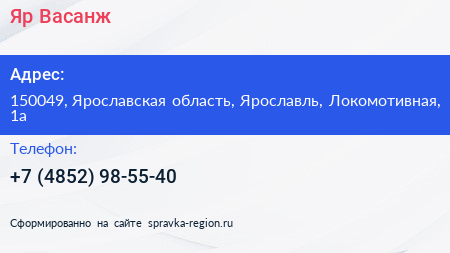 Яр-Васанж по адресу 150049, Ярославская область, Ярославль, Локомотивная, 1а в дальнейшем Организация, размещена в следующих категориях: