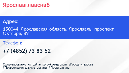 Ярославглавснаб по адресу 150044, Ярославская область, Ярославль, проспект Октября, 89 в дальнейшем Организация, размещена в следующих категориях: