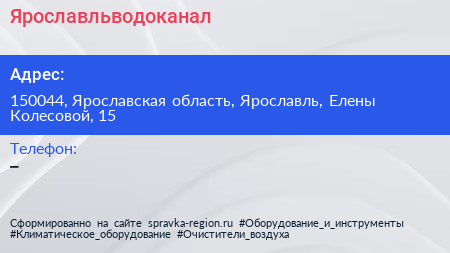 Ярославльводоканал по адресу 150044, Ярославская область, Ярославль, Елены Колесовой, 15 в дальнейшем Организация, размещена в следующих категориях: