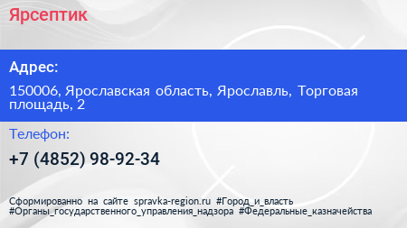 Ярсептик по адресу 150006, Ярославская область, Ярославль, Торговая площадь, 2 в дальнейшем Организация, размещена в следующих категориях: