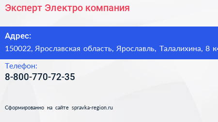 Эксперт Электро, компания по адресу 150022, Ярославская область, Ярославль, Талалихина, 8 к4 в дальнейшем Организация, размещена в следующих категориях: