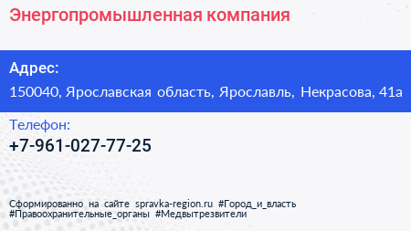 Энергопромышленная компания по адресу 150040, Ярославская область, Ярославль, Некрасова, 41а в дальнейшем Организация, размещена в следующих категориях: