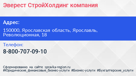 Эверест СтройХолдинг, компания по адресу 150000, Ярославская область, Ярославль, Революционная, 18 в дальнейшем Организация, размещена в следующих категориях: