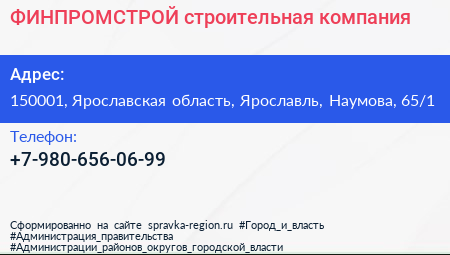 ФИНПРОМСТРОЙ, строительная компания по адресу 150001, Ярославская область, Ярославль, Наумова, 65/1 в дальнейшем Организация, размещена в следующих категориях: