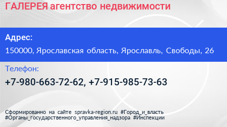 ГАЛЕРЕЯ, агентство недвижимости по адресу 150000, Ярославская область, Ярославль, Свободы, 26 в дальнейшем Организация, размещена в следующих категориях: