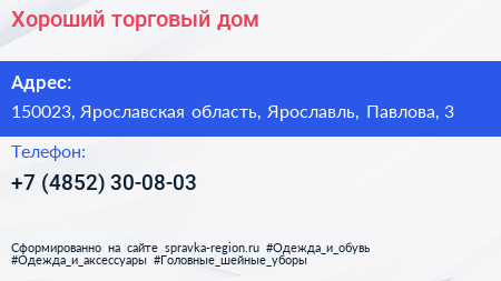 Хороший, торговый дом по адресу 150023, Ярославская область, Ярославль, Павлова, 3 в дальнейшем Организация, размещена в следующих категориях: