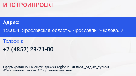 ИНСТРОЙПРОЕКТ по адресу 150054, Ярославская область, Ярославль, Чкалова, 2 в дальнейшем Организация, размещена в следующих категориях: