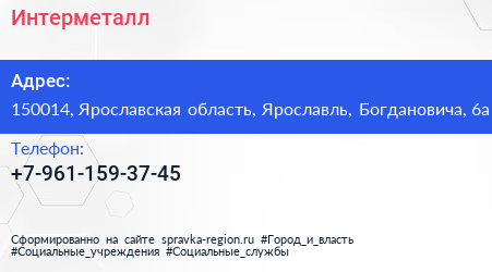 Интерметалл по адресу 150014, Ярославская область, Ярославль, Богдановича, 6а в дальнейшем Организация, размещена в следующих категориях:
