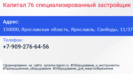 Капитал 76, специализированный застройщик по адресу 150000, Ярославская область, Ярославль, Свободы, 11/37 в дальнейшем Организация, размещена в следующих категориях: