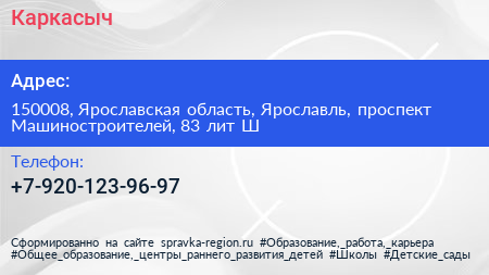 Каркасыч по адресу 150008, Ярославская область, Ярославль, проспект Машиностроителей, 83 лит Ш в дальнейшем Организация, размещена в следующих категориях: