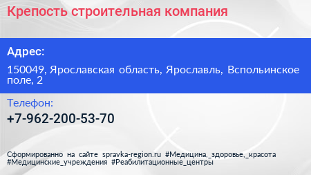 Крепость, строительная компания по адресу 150049, Ярославская область, Ярославль, Вспольинское поле, 2 в дальнейшем Организация, размещена в следующих категориях: