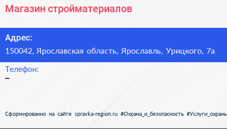 Магазин стройматериалов по адресу 150042, Ярославская область, Ярославль, Урицкого, 7а в дальнейшем Организация, размещена в следующих категориях: