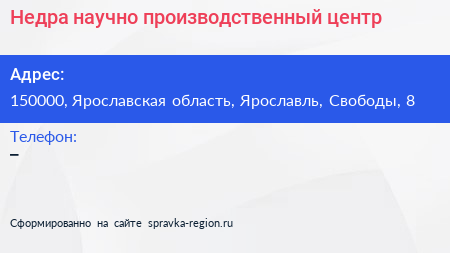 Недра, научно-производственный центр по адресу 150000, Ярославская область, Ярославль, Свободы, 8 в дальнейшем Организация, размещена в следующих категориях: