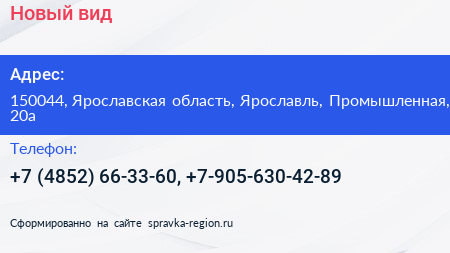 Новый вид по адресу 150044, Ярославская область, Ярославль, Промышленная, 20а в дальнейшем Организация, размещена в следующих категориях: