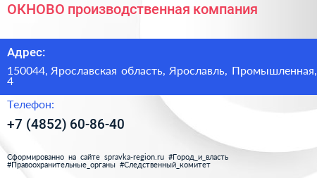 ОКНОВО, производственная компания по адресу 150044, Ярославская область, Ярославль, Промышленная, 4 в дальнейшем Организация, размещена в следующих категориях: