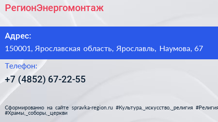 РегионЭнергомонтаж по адресу 150001, Ярославская область, Ярославль, Наумова, 67 в дальнейшем Организация, размещена в следующих категориях: