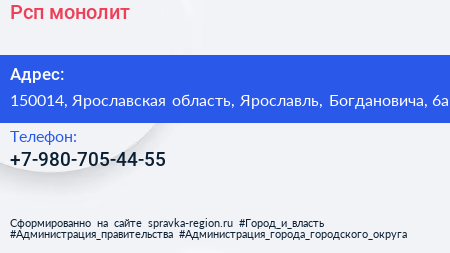 Рсп монолит по адресу 150014, Ярославская область, Ярославль, Богдановича, 6а в дальнейшем Организация, размещена в следующих категориях: