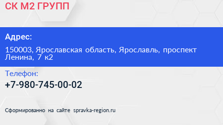 СК М2-ГРУПП по адресу 150003, Ярославская область, Ярославль, проспект Ленина, 7 к2 в дальнейшем Организация, размещена в следующих категориях: