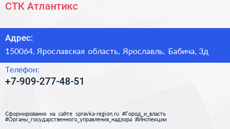 СТК Атлантикс по адресу 150064, Ярославская область, Ярославль, Бабича, 3д в дальнейшем Организация, размещена в следующих категориях: