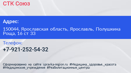 СТК-Союз по адресу 150044, Ярославская область, Ярославль, Полушкина Роща, 16 ст 33 в дальнейшем Организация, размещена в следующих категориях: