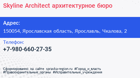 Skyline Architect, архитектурное бюро по адресу 150054, Ярославская область, Ярославль, Чкалова, 2 в дальнейшем Организация, размещена в следующих категориях: