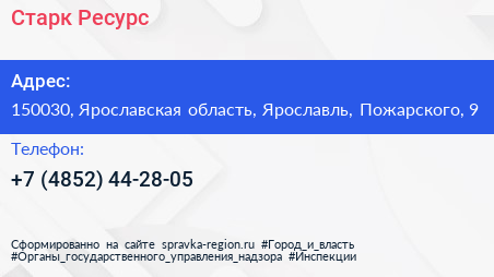 Старк Ресурс по адресу 150030, Ярославская область, Ярославль, Пожарского, 9 в дальнейшем Организация, размещена в следующих категориях: