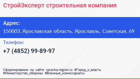 СтройЭксперт, строительная компания по адресу 150003, Ярославская область, Ярославль, Советская, 69 в дальнейшем Организация, размещена в следующих категориях: