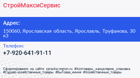 СтройМаксиСервис по адресу 150060, Ярославская область, Ярославль, Труфанова, 30 к3 в дальнейшем Организация, размещена в следующих категориях: