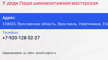 У дяди Паши, шиномонтажная мастерская по адресу 150023, Ярославская область, Ярославль, Нефтяников, 15в в дальнейшем Организация, размещена в следующих категориях: