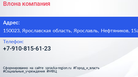 Влона, компания по адресу 150023, Ярославская область, Ярославль, Нефтяников, 15а в дальнейшем Организация, размещена в следующих категориях: